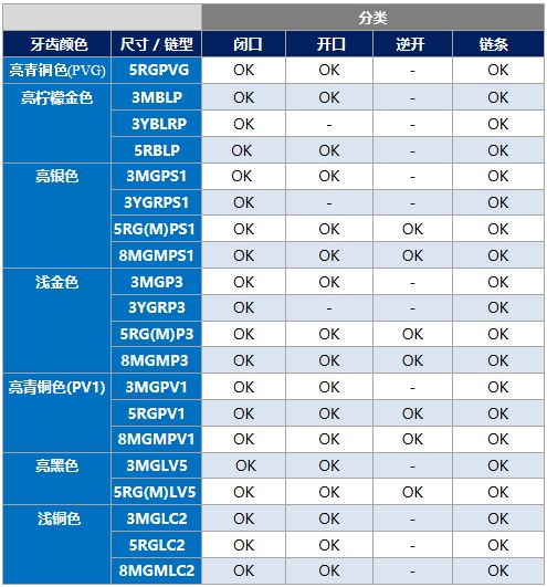 * 表面亮澤的金屬拉鏈,有多種金屬顏色可以選擇。 *拉頭顏色也有亮色系可供選擇。 * YZiP?系列也部分適用。