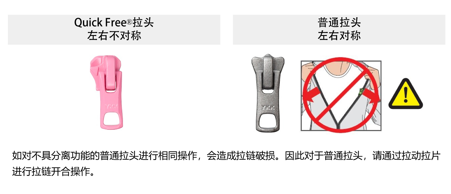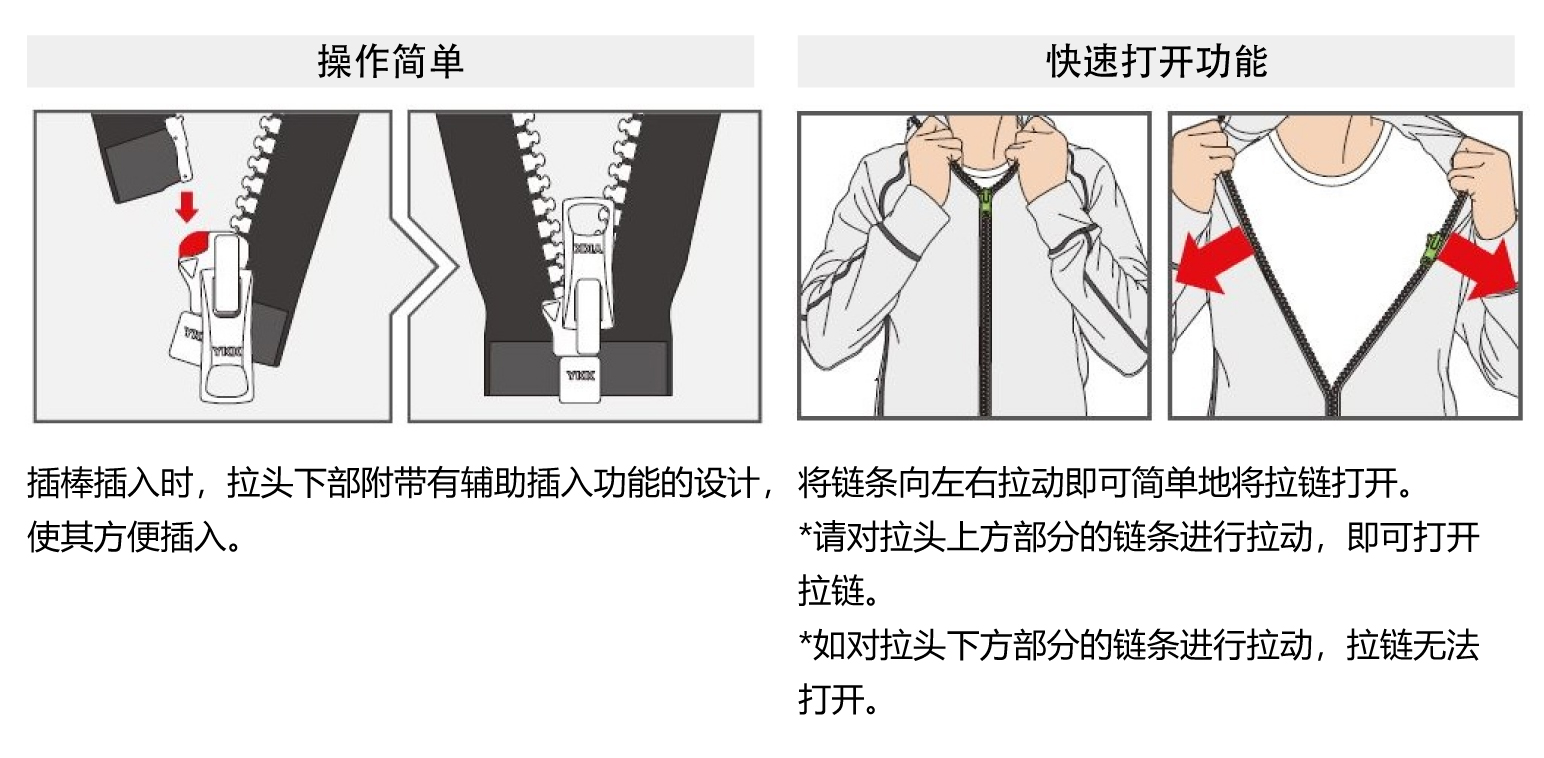 .使用于重量較重的衣物時(shí),在此負(fù)重下進(jìn)行快速打開的動(dòng)作后,會(huì)出現(xiàn)拉鏈無(wú)法閉合的情況。
