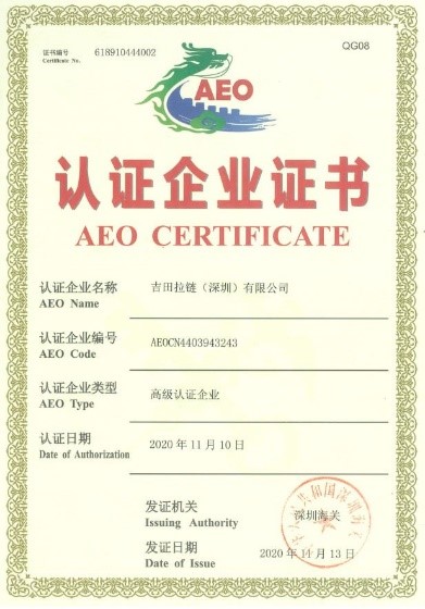 吉田拉鏈(深圳)有限公司于2018年7月開啟了AEO高級認證的申領之路。我們建立了AEO推進體系并成立了AEO事務局,申請AEO高級認證被列入到了各部門各崗位的工作計劃當中。上至總經理下到普通員工,我們全員投入,積極參與海關及公司內外的AEO相關培訓學習,了解AEO對企業(yè)、對工作崗位的作業(yè)要求,并對照AEO高級認證標準逐條進行實際評估,修正了覆蓋ISO9001、14001、45001及機密與信息安全管理、風險管理體系等在內的體系文件及記錄表格20余份。從改善相關硬件、軟件著手,通過梳理規(guī)范內部管理流程,全面提升了公司的貿易安全管理水平,夯實了公司誠信經營的基礎。經過上下一心的努力,我們一次性通過了內部控制、守法規(guī)范、貿易安全等5大類32項海關高級認證企業(yè)標準的重重“考驗”,于2020年11月成為了經中國海關認證的AEO高級認證企業(yè),也是YKK中國集團企業(yè)中首家獲得海關AEO高級認證的企業(yè)。截至到目前,全國進出口企業(yè)大約200萬家,海關AEO高級認證企業(yè)大約5000余家,占比0.25%;深圳進出口企業(yè)約16萬家,海關AEO高級認證企業(yè)約380余家,占比0.24%